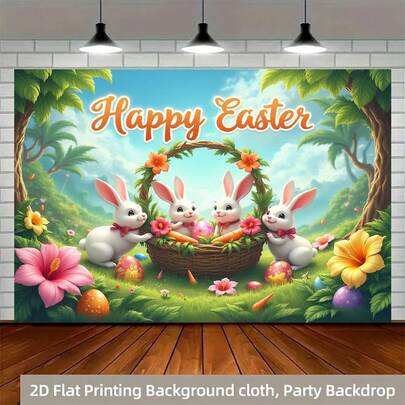 2D平面横幅,1件装复活节主题横幅,图案包括兔子、复活节彩蛋、花篮和花卉,适用于主题派对装饰,室内/室外庆祝活动、家居装饰、拍照道具、节日装饰,采用耐用涤纶材质,无需用电 - 彩色 - 查看 2