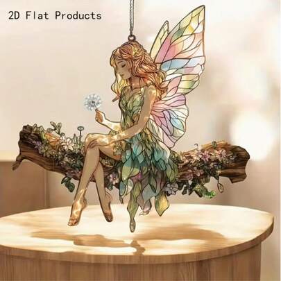 2D 立体迷人亚克力仙女阳光捕捉器 - 奇幻花天使,完美适用于仙女花园、窗户装饰、客厅、卧室、门廊、办公室、走廊、厨房、浴室、户外悬挂装饰,奇幻窗饰 | Vibrant Fair - 彩色 - 查看 1