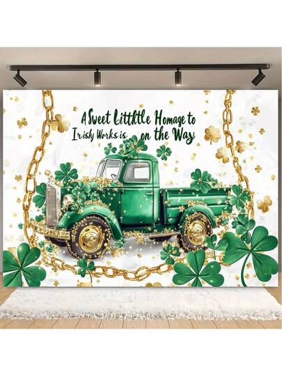 2D平面幸运符圣帕特里克节派对背景幕布 - 三叶草、彩虹和粉色卡车主题 | 涤纶生日和户外聚会庆祝拍照横幅 - 1pcs - 查看 6