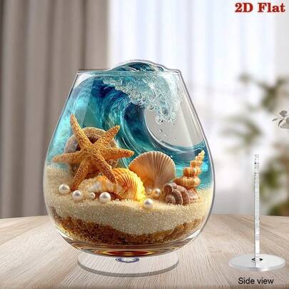 2D旋转亚克力桌面摆件,海浪、贝壳和海星设计 - 夏季假日海滨家居装饰,无需电源 - 彩色 - 查看 2