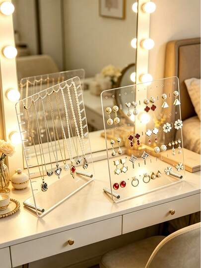 2件套悬挂式首饰收纳架,多层桌面台面独立式项链/耳环架展示架,亚克力+不锈钢/透明色