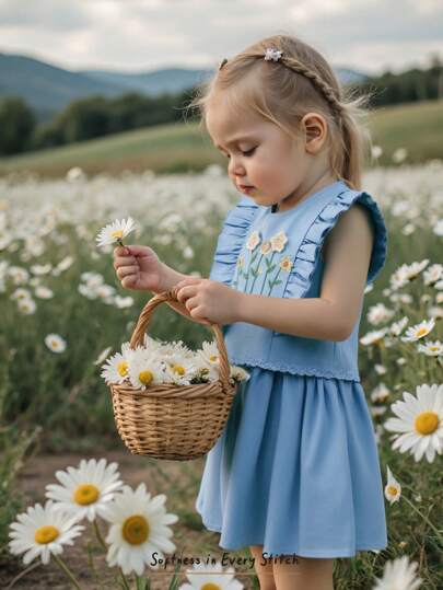 Cozy Pixies 2 件装女婴花卉印花圆领荷叶边下摆上衣和松紧腰短裤套装 - 藍色 - 查看 7