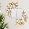 1件优雅金白花卉开关墙贴 - 金色叶子和白色花朵墙饰,墙贴,适用于客厅、卧室、厨房、浴室、浴室装饰、厨房装饰、装饰艺术