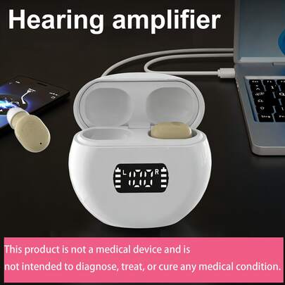2个耳机+1个充电盒,便携式设计,可充电助听器,带硅胶耳罩,便携式辅助配件 | 时尚礼品助听器 - 白色 - 查看 6