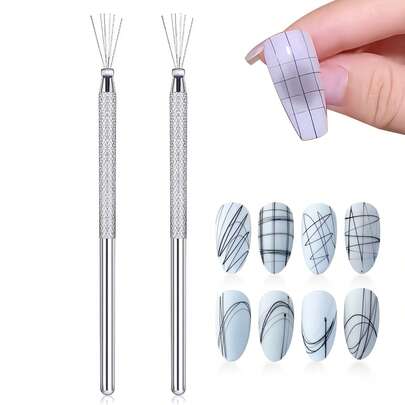 2支装美甲调色刷,多针搅拌刷,适用于凝胶指甲油,金属手柄丙烯酸凝胶搅拌工具
