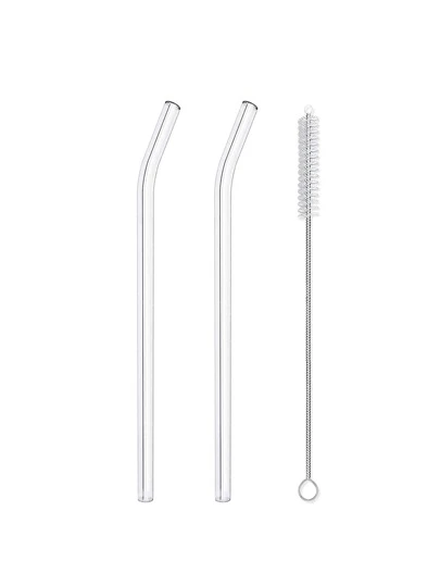 2 件透明玻璃吸管套装带清洁刷,适用于饮用饮料(包括咖啡)学校用品、圣诞礼物 - 無色 - 查看 1