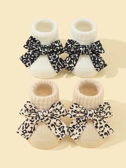 2雙嬰兒蝴蝶結裝飾襪子 - 彩色 - 查看 4