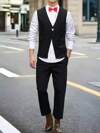 SHEIN 3 件青少年男孩绅士西装套装:精致黑色撞色领西装外套 + 修身背心 + 优雅长裤,高端正装,适合生日派对、舞会、婚礼、毕业典礼