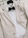 SHEIN 两件套青少年男童休闲西装套装,绅士风格,街头风,朋克摇滚风,校园风,适合日常穿着、派对、音乐节、春夏、婚礼、假期、海滩度假等场合。