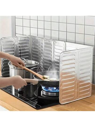 2个/1个厨房燃气灶防油溅罩,非食品接触防溅盖,可折叠燃气灶防油屏障,厨房炊具防油溅罩,耐热防溅锅,必备户外烹饪配件 - 銀色 - 查看 6