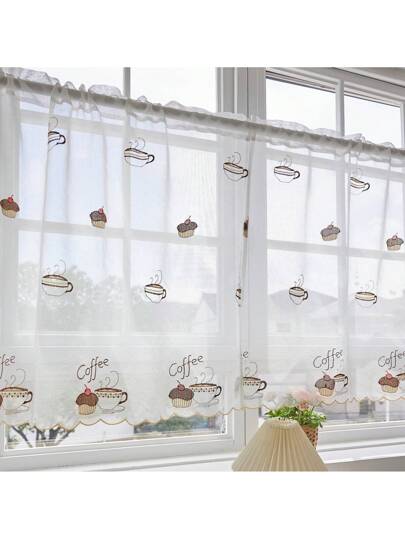 2入組美式鄉村風格白色刺繡半窗簾咖啡短款紗窗簾廚房小窗咖啡店門簾新產品 - 白色底 - 查看 1