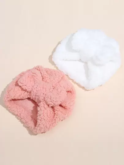 2入組秋冬新款兒童蝴蝶結設計保暖嬰兒帽子 - 彩色 - 查看 2
