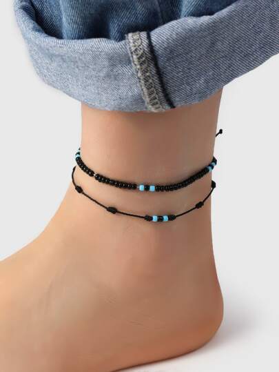2入組珠子裝飾腳錬 - 彩色 - 查看 2