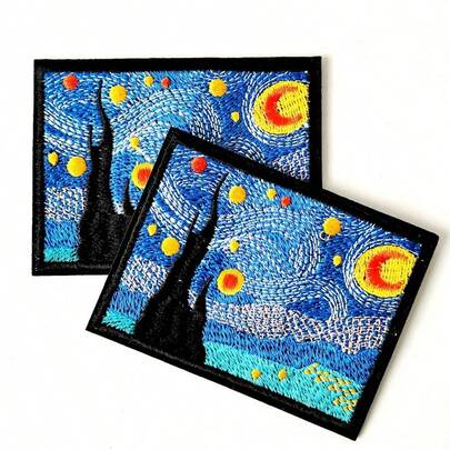 2片卡通抽象画刺绣贴片,适用于衣服、夹克、帽子、背包、牛仔裤 - 可熨烫/缝制装饰性DIY刺绣徽章 - H-藍色 - 查看 6