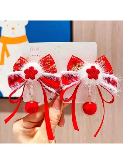 2入組兒童風紅色蝴蝶发夹,新年版 - 紅色 - 查看 2