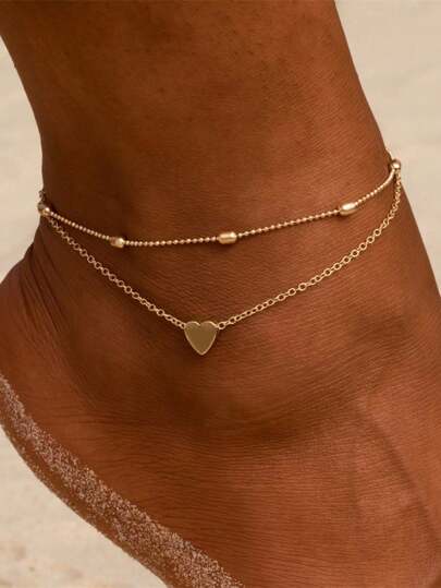 2 件双心形吊坠脚链女士夏季珠宝