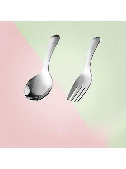 [2pcs Durable Stainless Steel Cutlery] 2pcs Durable Stainless Steel Compact Cutlery Set - Portable Spoon And Fork Combo With Short Handle For Travel, Students, Dining - Soup Spoon, Dessert Fork Kit