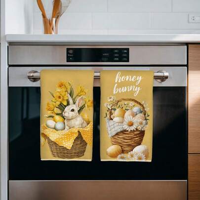 2条装复活节兔子和花卉图案超细纤维厨房毛巾,40*60厘米吸水性强,可作洗碗布、装饰手巾,适用于厨房、浴室,也是乔迁新居的理想礼物,物超所值 - 黃色 - 查看 2