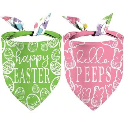 2条装复活节双层彩色彩蛋图案狗狗围巾 - 春季节日小狗围巾礼物,可调节尺寸,适合小型/中型犬,尺寸为24.8英寸 x 11英寸,适合吉娃娃、西施犬、梗犬等犬种。 - 彩色 - 查看 2