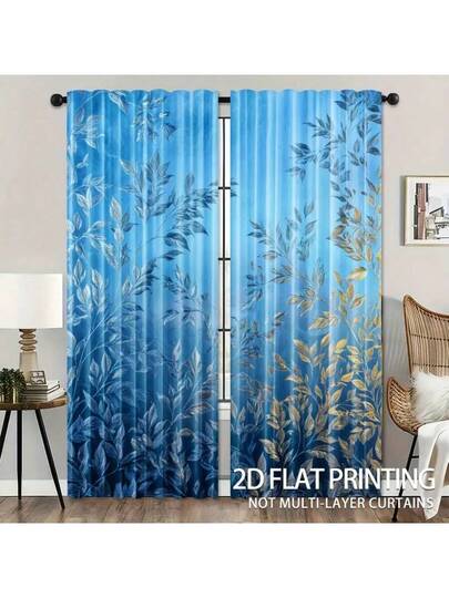 2片装优雅金色叶子窗帘 - 半透明窗帘,带杆袋设计,可机洗涤纶纤维窗帘,适合家居装饰,现代简约风格窗帘,适用于客厅和卧室 - 彩色 - 查看 2