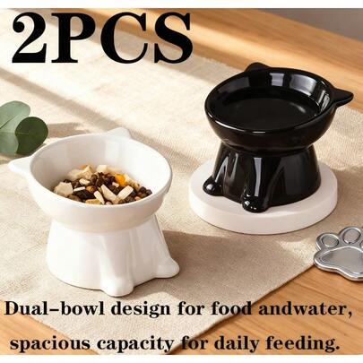两只装宠物增高碗,15°倾斜角设计 - 防呕吐增高食盆,保护颈椎脊椎,防滑宽底,塑料材质,适用于猫和小型犬,干湿粮皆可盛放,实用宠物礼品 - 2公升 - 查看 2
