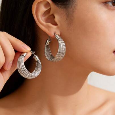 2只夸张金属几何圈形耳环,时尚简约百搭复古港式优雅耳环,女士款