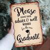 1 件复古金属墙饰标牌,适合毕业生 - “请留下您的建议和祝福” 复古铁艺装饰,饰有毕业帽图案,适合家居、酒吧或咖啡馆,尺寸 8x12 英寸,毕业派对装饰