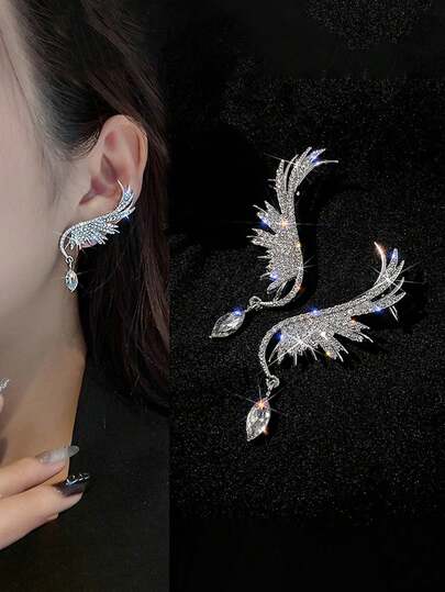 2只韩式水晶天使翅膀夹式耳环,优雅闪亮的水晶翅膀耳夹,奢华新娘婚礼水钻耳环,女士情人节配饰 - 彩色 - 查看 10