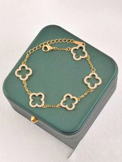 2条简约幸运四叶草手链,法式甜美高端立方氧化锆四叶花饰品,女士款