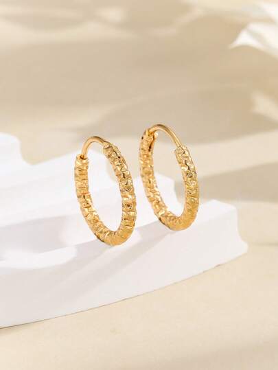 2只简约纹理小圆环耳环,时尚优雅,适合女性日常佩戴,百搭男女皆宜的情侣耳环