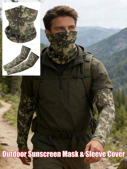 2件装/户外骑行面罩,冰袖组合,遮阳,冰丝头巾袖套,户外钓鱼,驾驶,冰袖头套,冰敏感颈部保护,透气面罩,骑行跑步面罩,户外骑行臂套