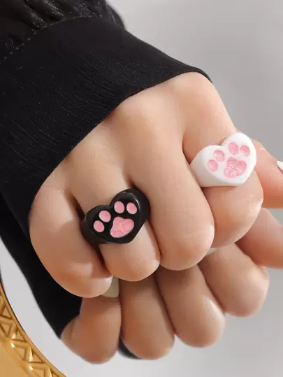 2 件爪子细节心形设计戒指情人节、妈妈、母亲、母亲节、礼物 - 彩色 - 查看 1