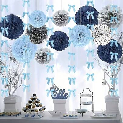 2个珍珠链蝴蝶结装饰挂件,蓝色涤纶丝带蝴蝶结,适用于婚礼、生日、餐桌装饰、主题派对用品、节日工艺品