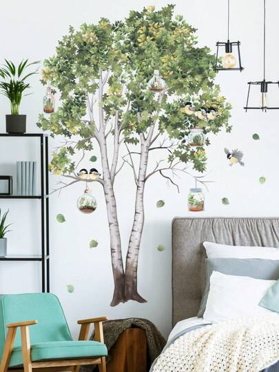 2入組pvc樹牆貼紙-臥室沙發背景牆裝飾-帶綠葉邊框的可拆式壁紙 - 彩色 - 查看 2