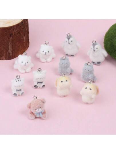 2 件装树脂植绒可爱熊企鹅兔子猫吊坠 DIY 珠宝配饰 - 彩色 - 查看 10