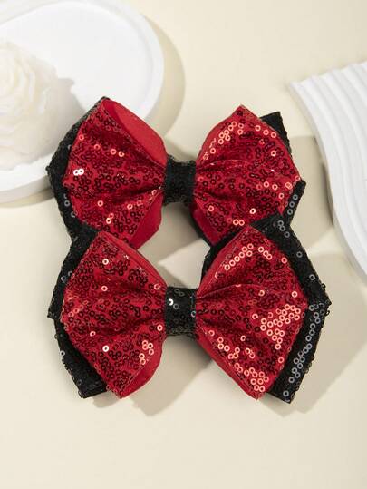 2件套亮片蝴蝶结发饰套装,彩色闪光发夹,适合女孩、派对、节日、舞台等场合,用途广泛 - 彩色 - 查看 2