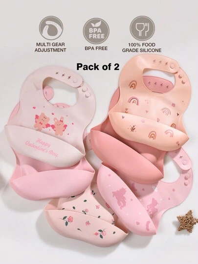 2 件套婴儿硅胶防水围兜,适合男孩和女孩,可洗情人节礼物,四季使用 - 彩色 - 查看 2