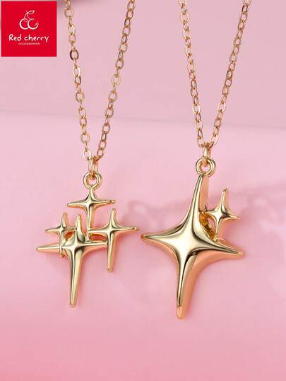 2件套儿童时尚精致星星吊坠项链套装,适合日常佩戴、送礼和节日佩戴