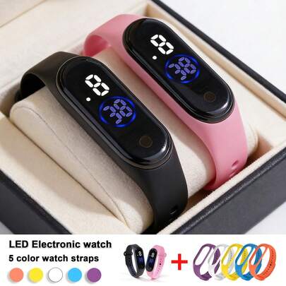 2条/套情侣TPU硅胶LED数字表带,1条黑色,1条粉色,配有4条可替换表带,显示时间、月份、年份、星期,适合上学、日常佩戴、节日及送礼。 - 彩色 - 查看 8