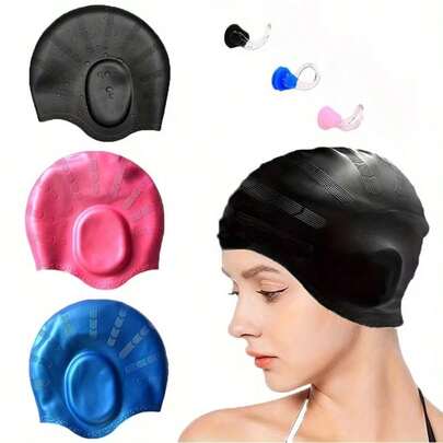 2个/套硅胶泳帽,带鼻夹,3D立体贴合设计,防水舒适防滑,防止头发沾湿,适合长发男女。