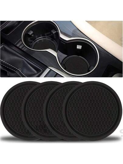 2 件硅胶防滑杯垫,柔软隔热垫,水晶钻装饰,创意汽车配件 - 黑色 - 查看 2