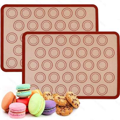 2片装硅胶烘焙垫,带圆形刻度,不粘烘焙垫,适用于马卡龙、饼干和面包