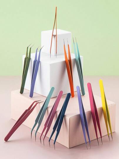 2件/直头弯头组合,马卡龙不锈钢手镊子,适用于美甲、贴纸、线夹、修补工具 - 彩色 - 查看 12