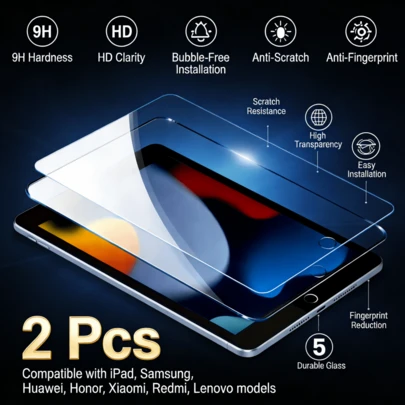 2片装:平板电脑屏幕保护膜,适用于三星、华为、荣耀、小米等平板电脑。光滑,全覆盖。游戏平板保护膜。钢化玻璃膜。透明高清。防指纹。屏幕保护必备品,适用于日常、办公、家用平板电脑。防水防震防摔防刮。 - 無色 - 查看 156