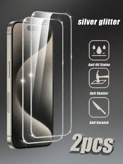 2 件超高清全覆盖屏幕保护膜,银色闪光边缘,高清晰度和透明度,9H 硬度,保护眼睛,高响应度,耐刮擦,兼容 7-16/17/17 Air/17 Pro/17 Pro Max 系列 - 無色 - 查看 25