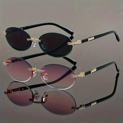 两副男女通用无框复古时尚优雅眼镜套装,休闲百搭,修饰脸型,适合派对、送礼和拍照。 - 彩色 - 查看 6