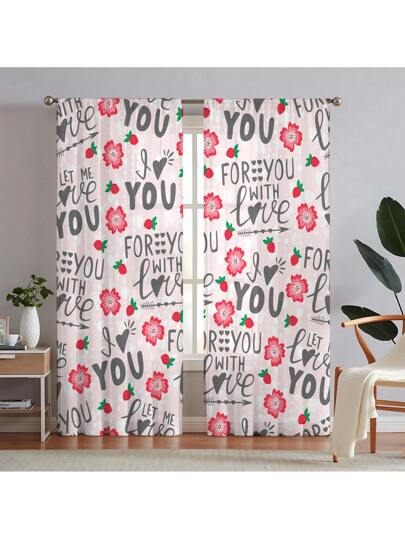 2入組情人節主題印花透明窗簾,帶插袋,適用於家居裝飾-臥室、辦公室、廚房、客廳、書房 - 彩色 - 查看 2