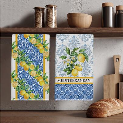 2条复古蓝色花卉柠檬图案厨房毛巾,40*60厘米,柔软超细纤维材质,适用于家庭、厨房、餐厅、户外露营、桌面清洁、餐具擦干、手部擦干,节日礼物 - 彩色 - 查看 1