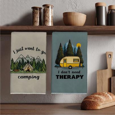 2条复古风格山野露营印花超强吸水厨房巾,40*60厘米长方形抹布、餐巾、手巾,厨房装饰,乔迁礼物