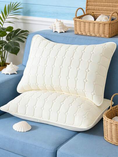 2件装防水防污防油绗缝无拉链枕套,不起球,信封式枕套,无拉链,柔软透气,防水,无异味,无噪音 - 白色 - 查看 12